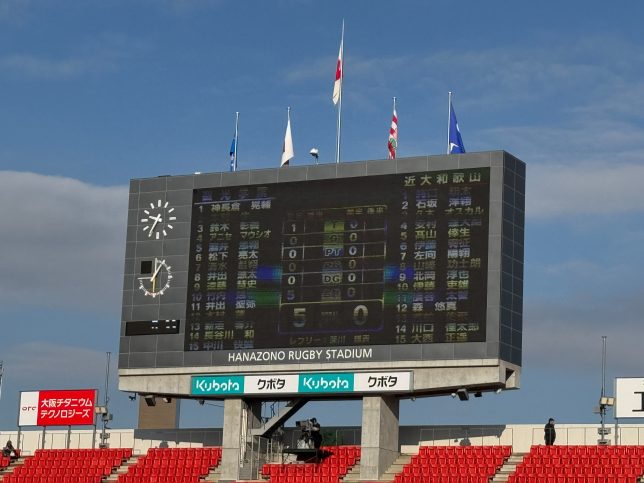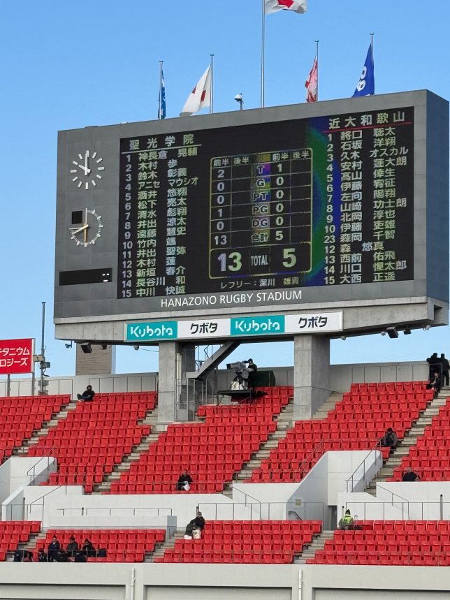 第105回全国高等学校ラグビーフットボール大会の1回戦は、花園ラグビー場のメインスタジアムで行われました。対戦相手は5大会連続7回目の出場となる和歌山県の強豪近大和歌山高校でした。