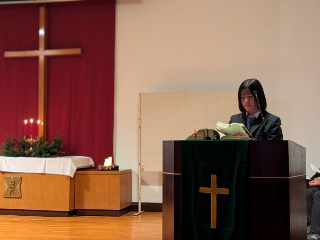 讃美歌を讃美し、聖書を朗読したほか、ブラスバンド部の「クリスマスメドレー」、ハイワイ部の「朗読劇」、そして全国手話パフォーマンス甲子園で発表された手話部の「東日本大震災~あの日を忘れない~」を披露。全校生徒を釘付けにしました!