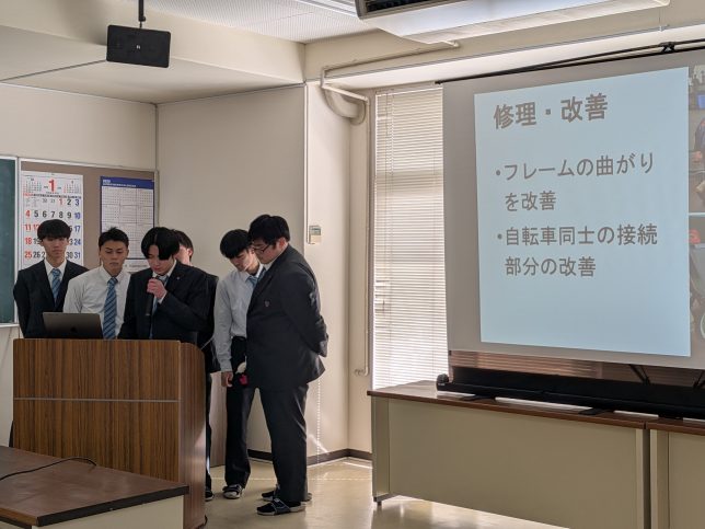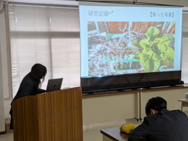 うまく行ったところ、失敗したところ、改善しなくてはならないこと、それぞれをプレゼンという形で発表してくれました。3年生になってから取り組んだ卒業製作。昨年2年生時に当時の3年生の発表を受けて、その研究を参考にしたグループもあり、大変有意義な時間となりました!