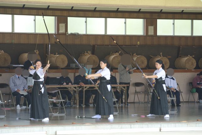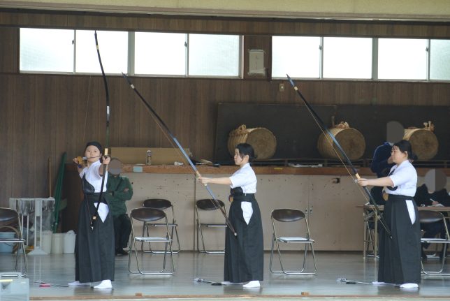 今大会での大きな不安要素は自身への重圧にどう立ち向かうかということだったと思います。4月29日(火)に県北地区春季錬成会、5月3日(土)には春季県北弓道大会と今回のための経験の場を与えたつもりでしたが、選手たちは皆緊張している様子で日頃の練習でできたことが、まるで活かしきれなかったと落胆していました。今回も皆プレッシャーにやられて、競技終了後どんよりした空気になるのかと心配はしていましたが…。