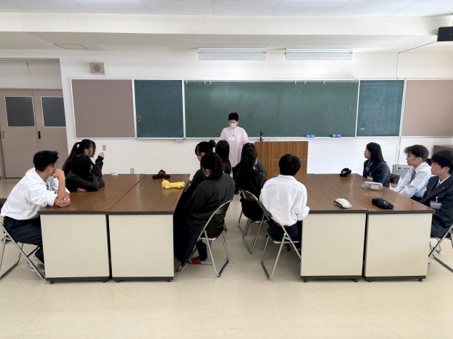 10月10日(金)に伊達市社会福祉協議会の佐藤様、齋藤様にお越しいただき、1年生福祉探究コースを対象に、第6回子ども食堂講座を開催しました。今回の講座は初回となりので、食堂名を決める話し合いを行いました。