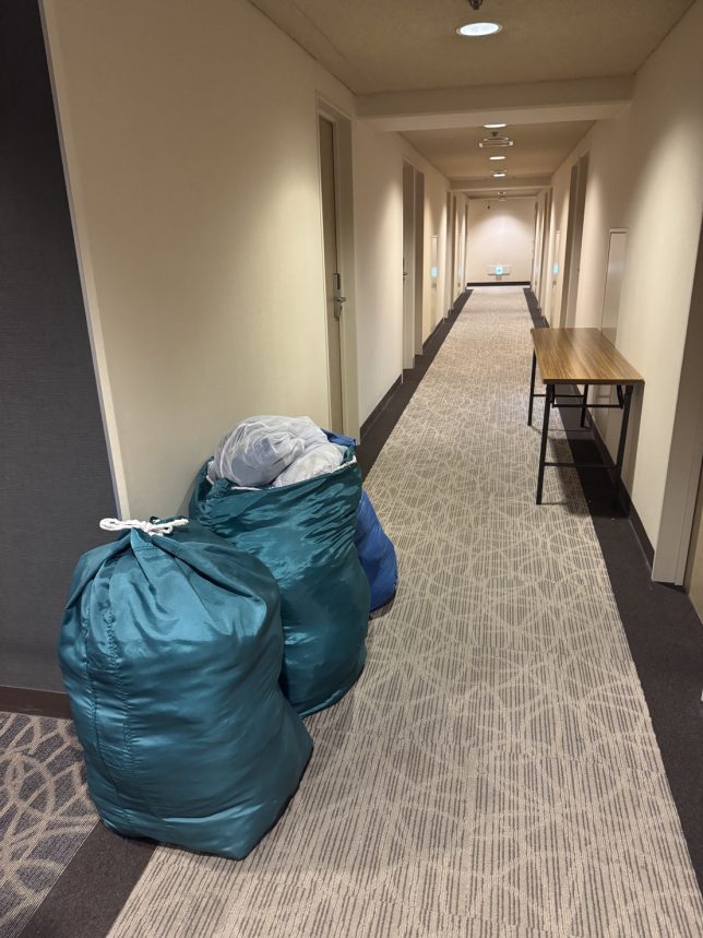 身近なことを挙げれば、甲子園期間中の洗濯は業者さんに委託しているのですが、業者さんからこんな話しを頂きました。その業者さんは今年は甲子園出場校のうち15校くらいの洗濯の委託を受けているそうなんですが、とにかく聖光学院さんがNo.1です、と。どこもそうだけど自分の洗濯物をさっさと持っていくけど、他の人のものは知らぬ存ぜぬだと。だからいつまでも昨日の洗濯物がグチャグチャになって残っていたり、廊下が汚かったりするんです、と。そして業者さんからこんな写真が送られてきました。