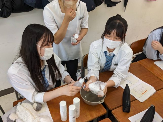 クレンジングや乳液の使い方、肌細胞を良い状態にさせるための栄養食など、普段学校では学ぶことができない貴重な時間となりました。